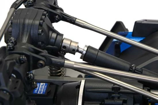 The steering servo can be either mounted directly above the axle housing or alongside the motor within the upper chassis frame utilising a panhard rod. The coil over shock absorbers come in the form of adjustable, threaded body aluminium units for maximum durability and performance.