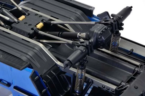 Available in either unassembled kit form or factory finished ready-to-run. The RTR version is available with a grey or blue finished scale inspired bodyshell that is feature rich with numerous scale moulded touches such as front headlight buckets for LED lights, moulded inner and outer wheel arches, roof bars, snorkel, door handles, wipers, running boards, mirrors and grill.